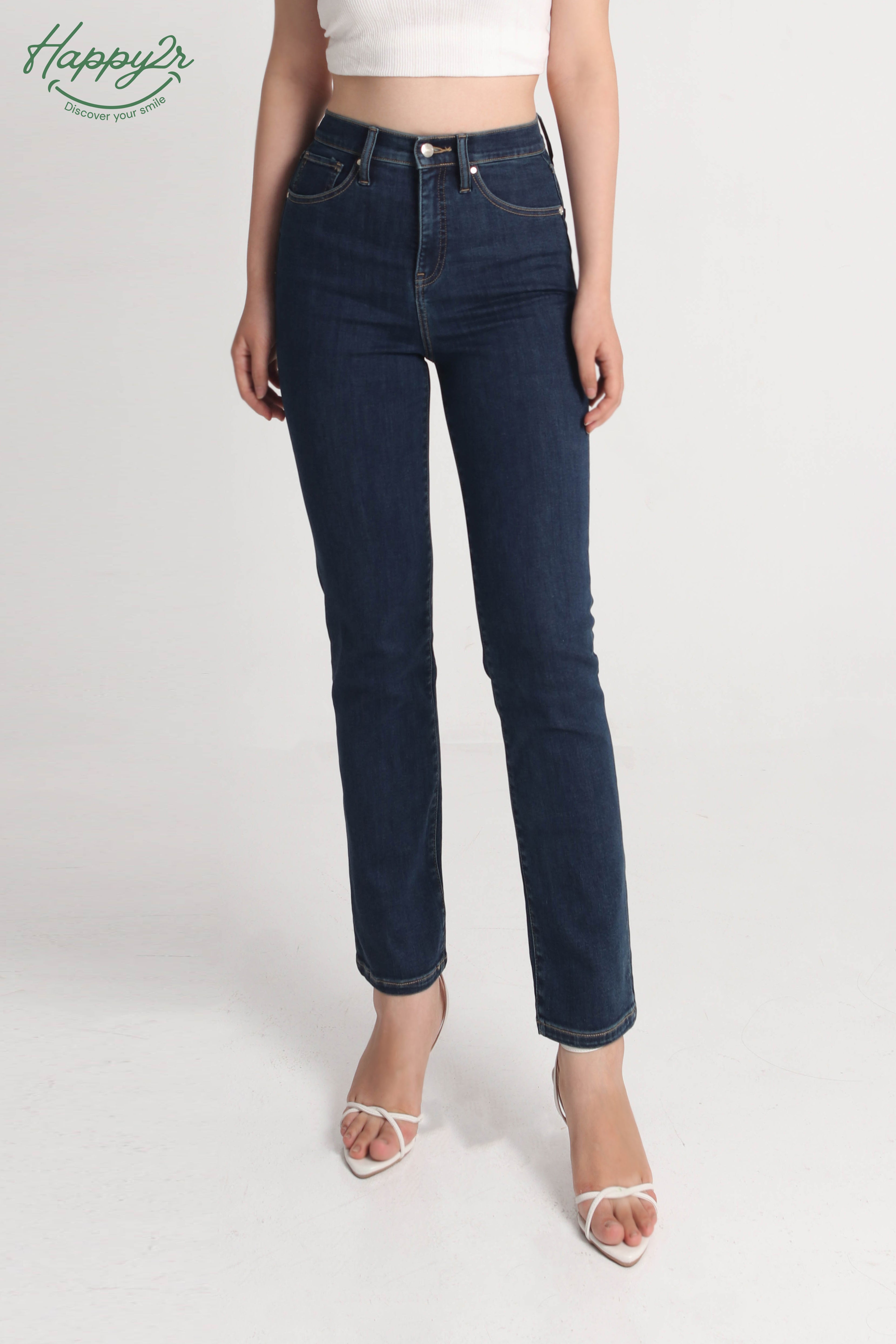 Mid-Rise Dark Wash with Embroidery Slim Jeans