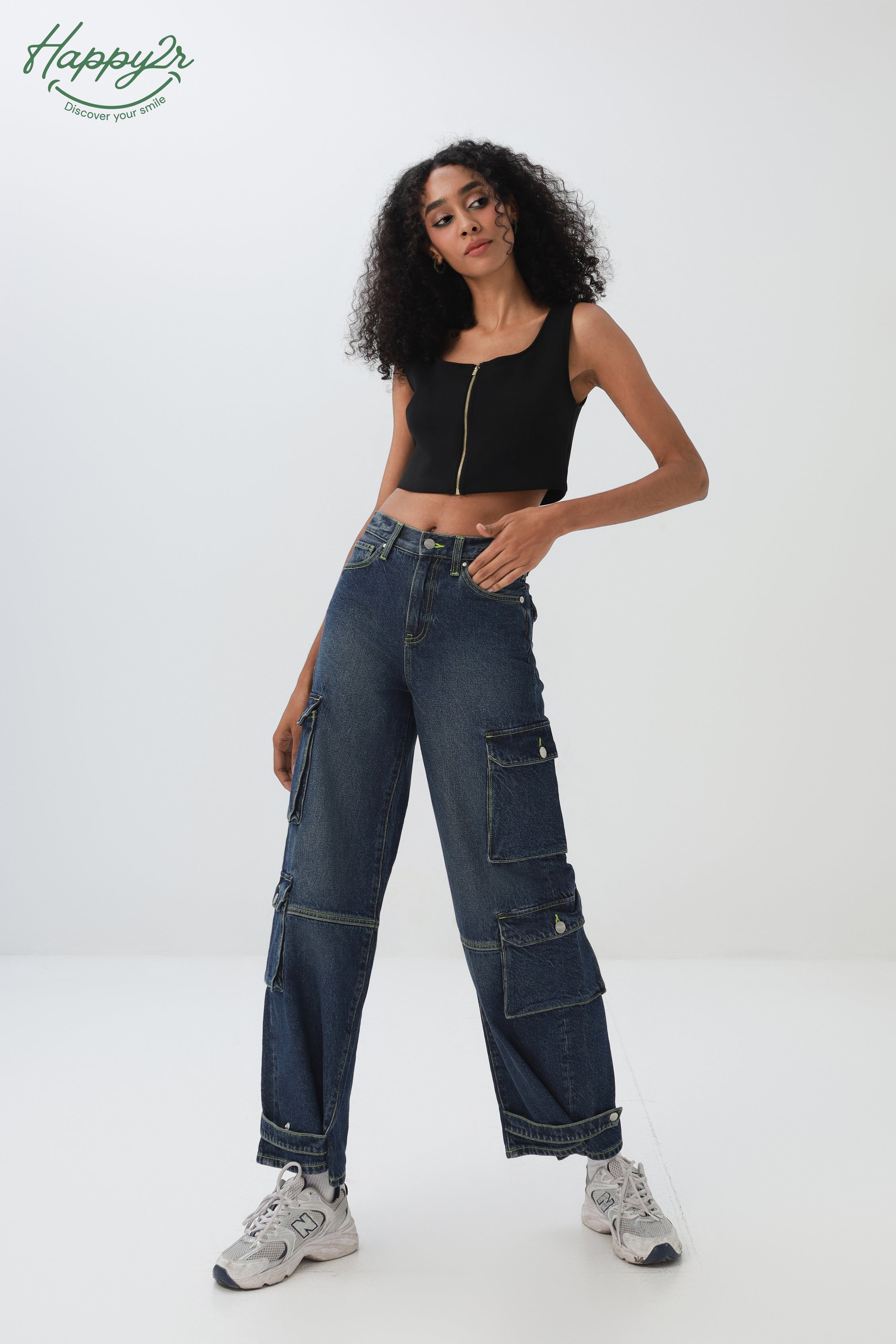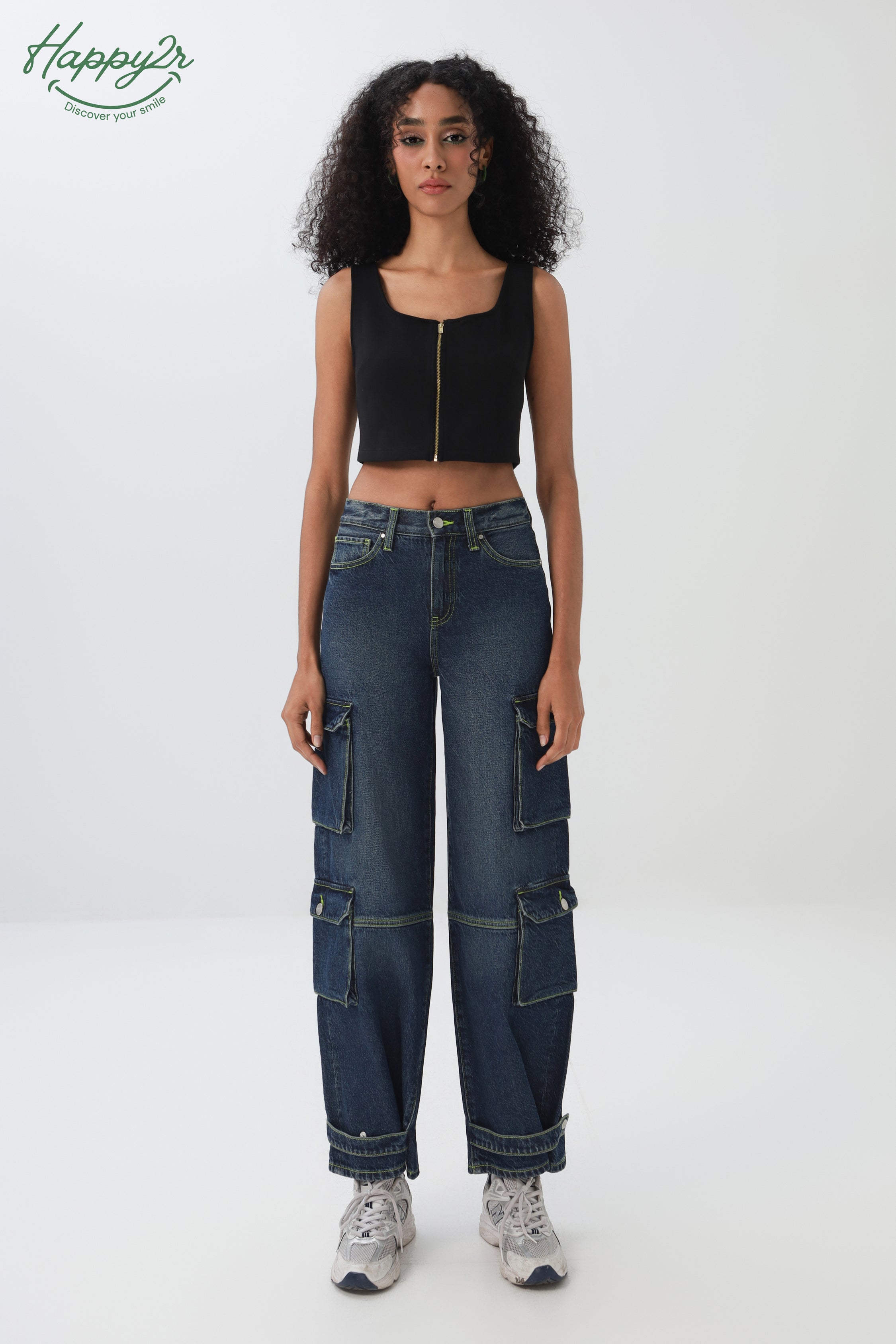 Mid-Rise Dark Wash Cargo Jeans