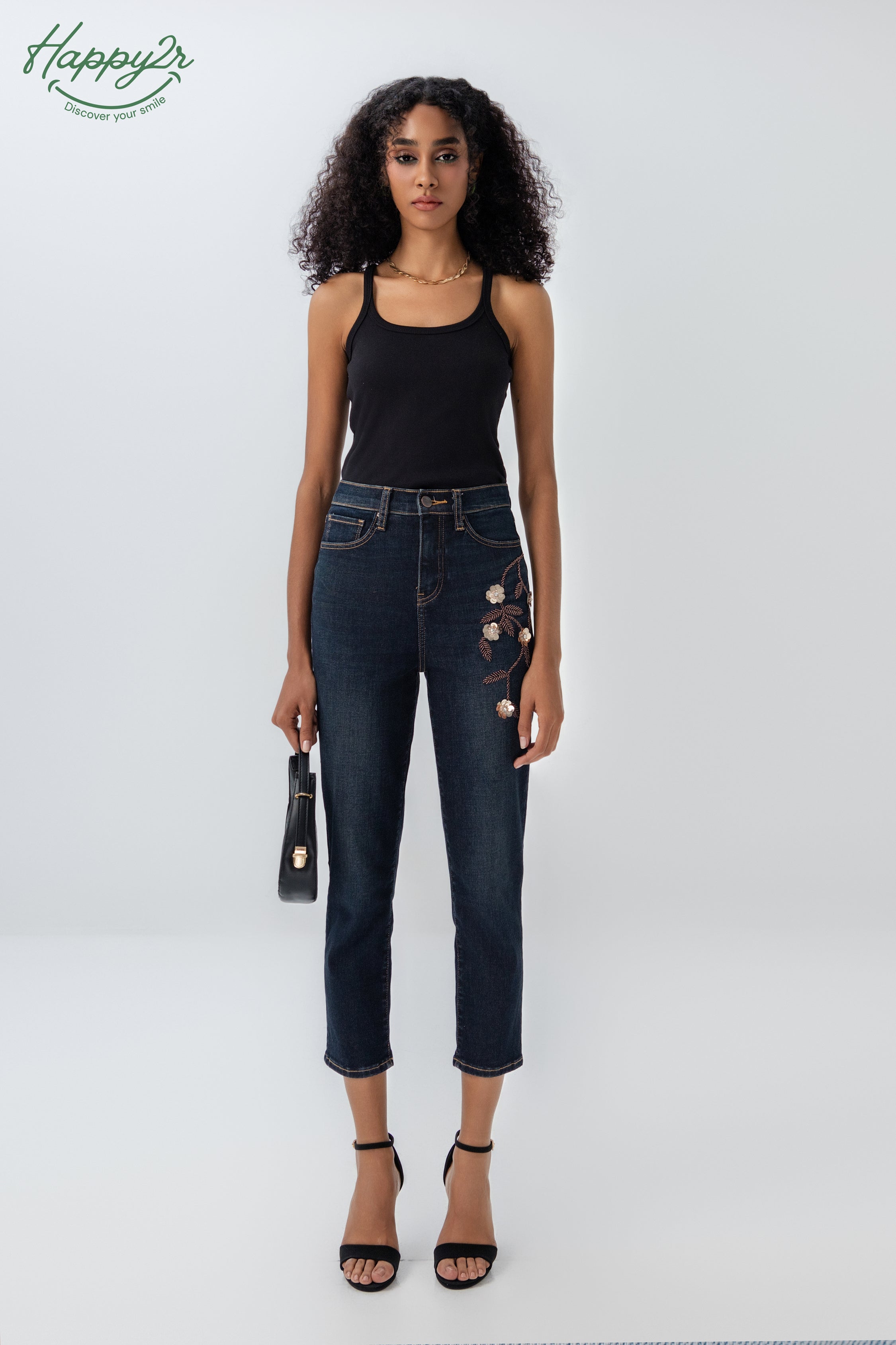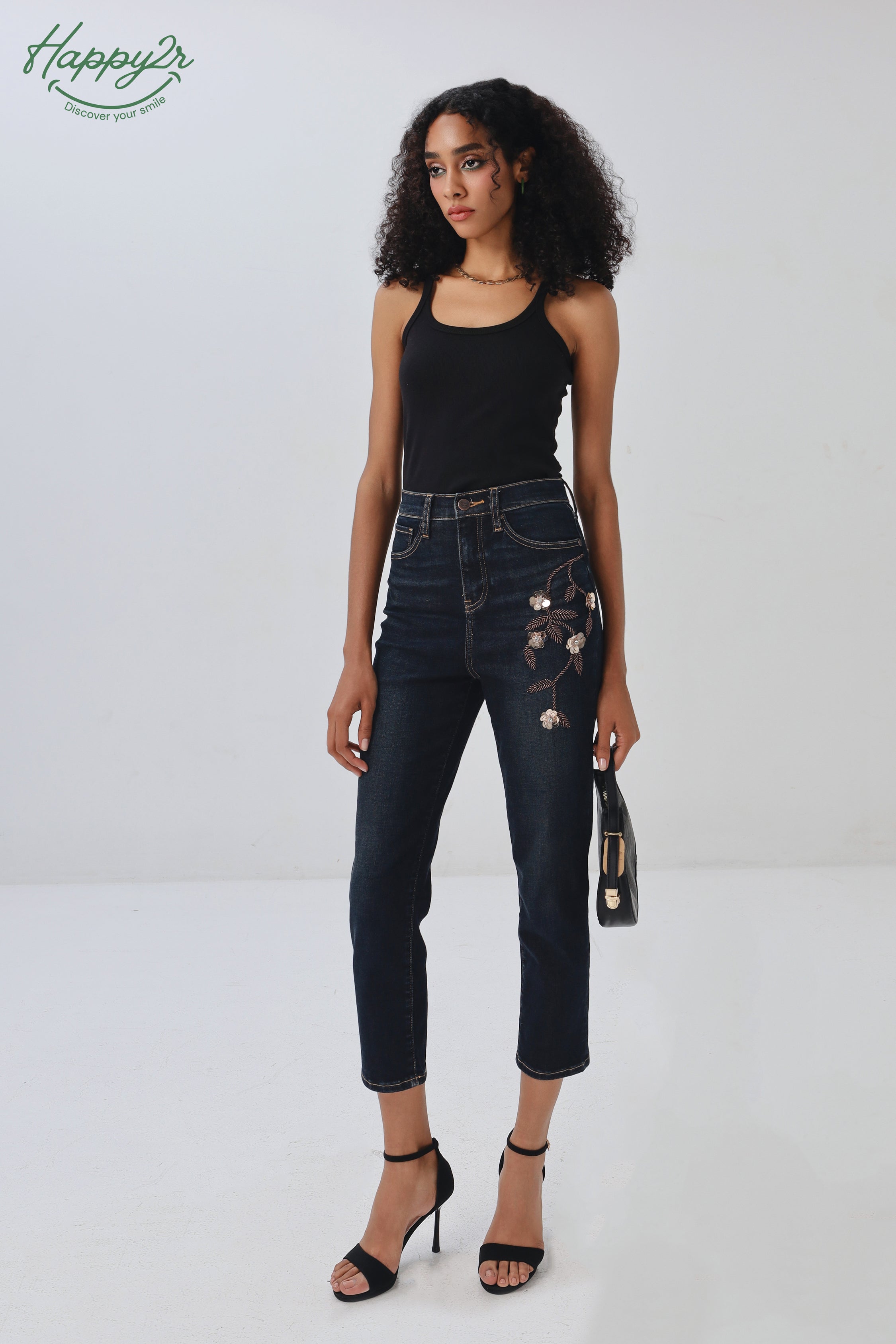 Hight Waist Heavy Wash Rhinestones Denim Skirt